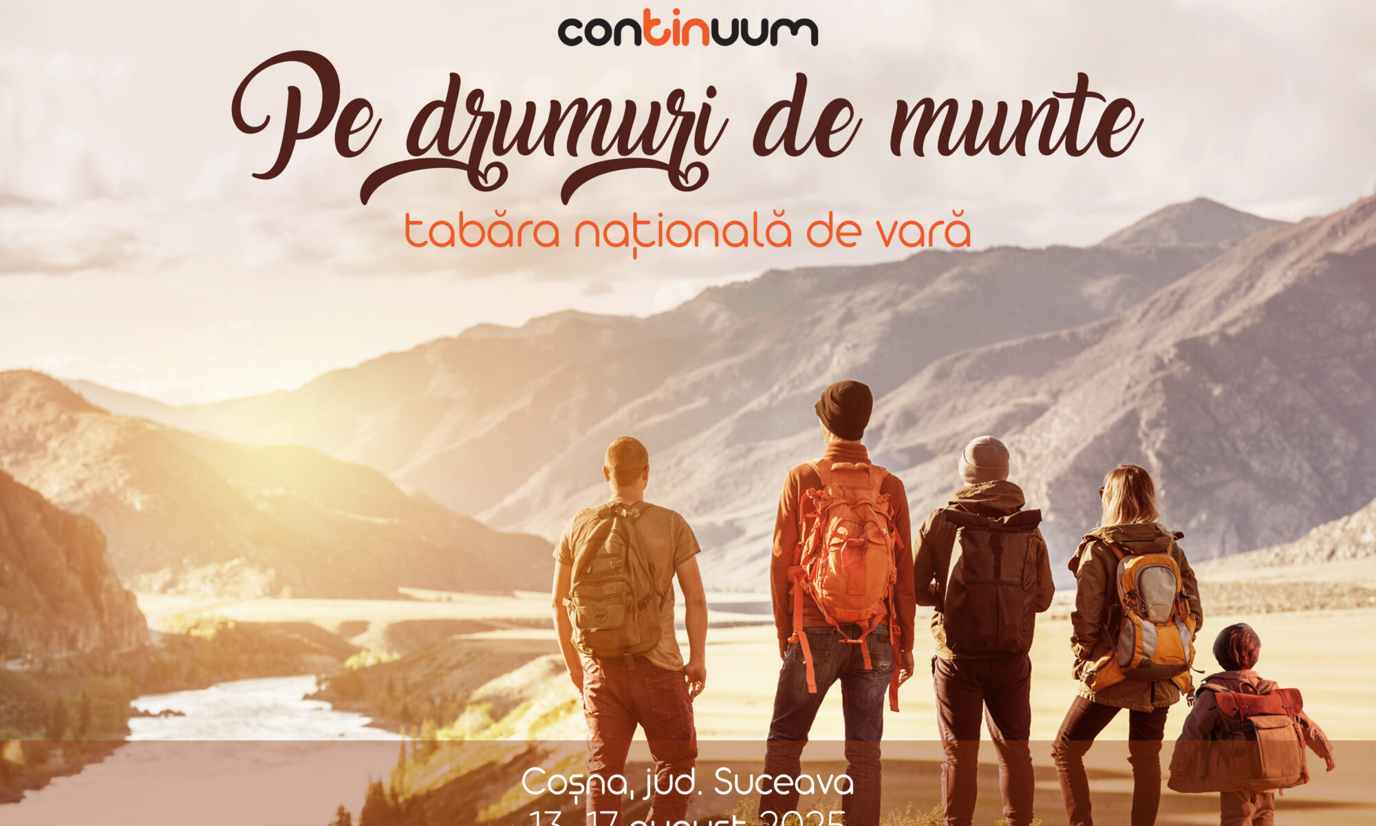 În această vrem să ne ridicăm ochii spre munți și să ne recalibrăm busola spre în Sus! Te așteptăm alături de noi în Tabăra Națională de Vară Continuum – Pe drumuri de munte. Vino cu prietenii, familia și copiii, la Continuum primim pe toată lumea.
